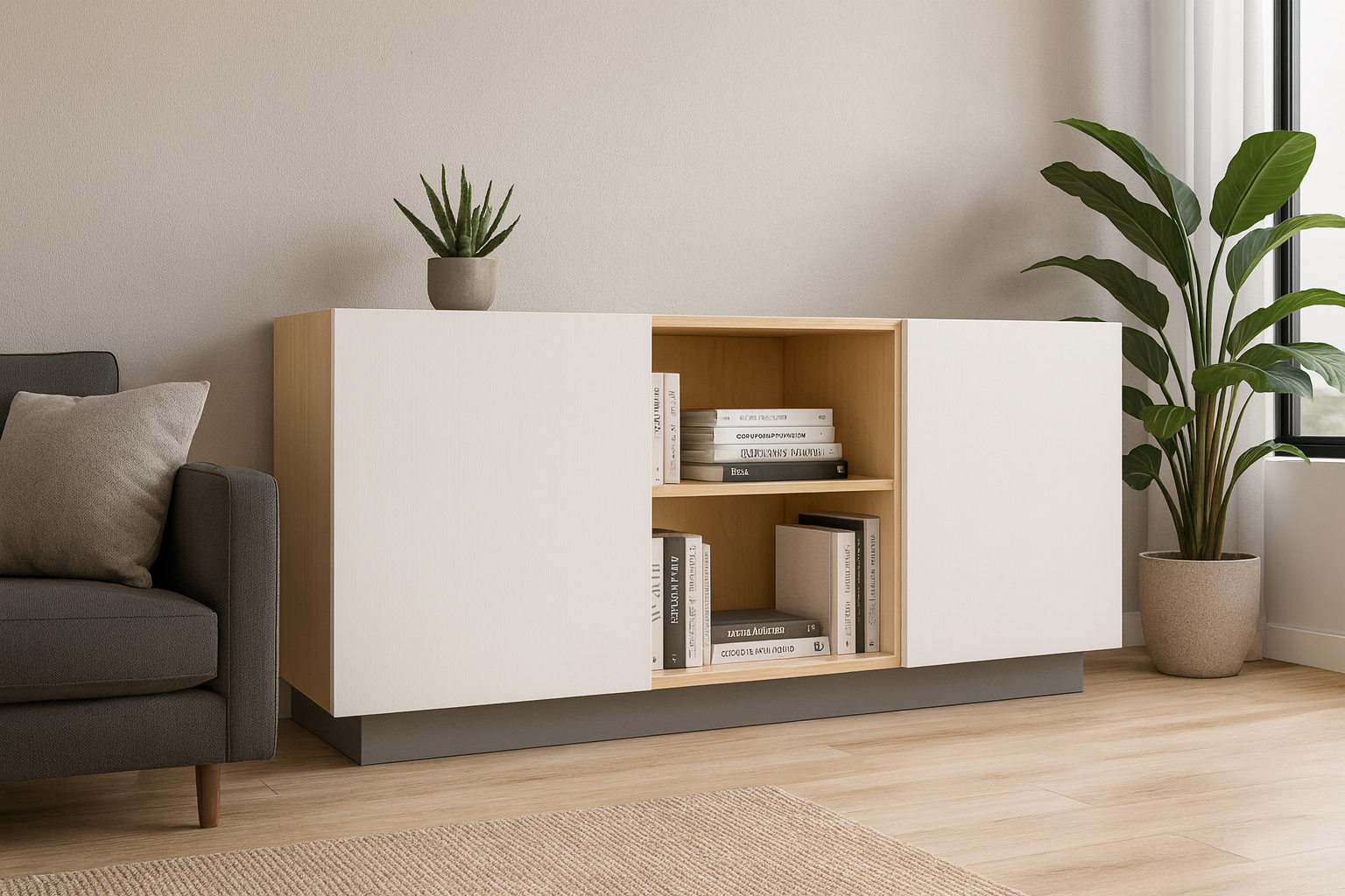 - Värv: Korpus ja sisu - naturaalne kask / Uksed - valge / Sokkel - tumehall.