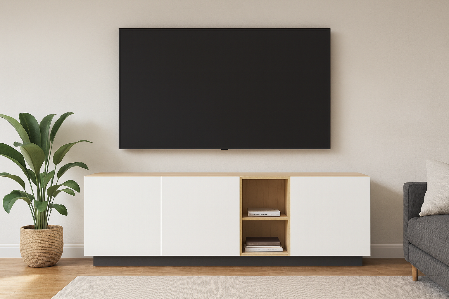 - Värv: Korpus ja sisu - naturaalne kask / Uksed - valge / Sokkel - tumehall.
