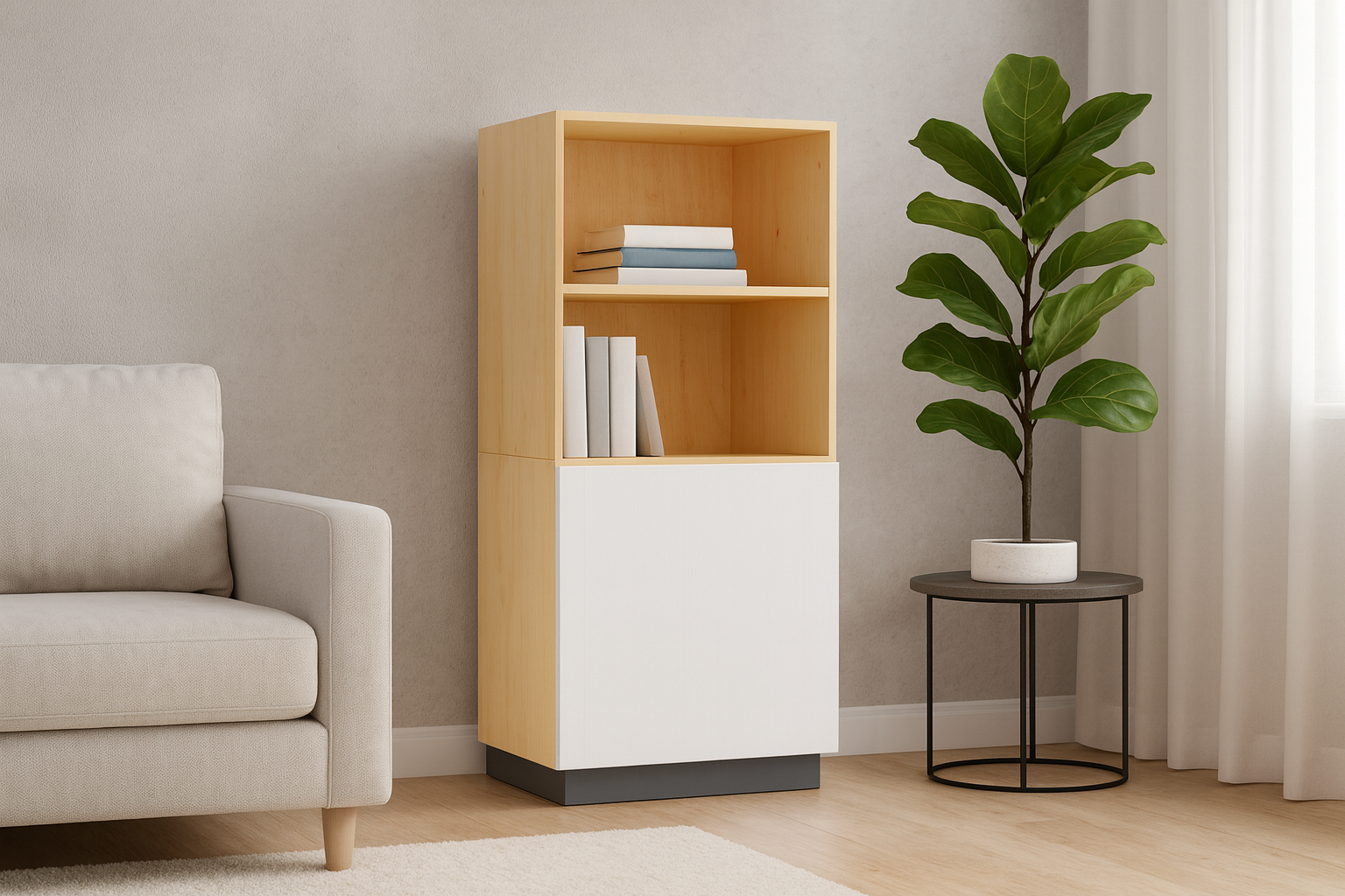 - Värv: Korpus ja sisu - naturaalne kask / Uksed - valge / Sokkel - tumehall.