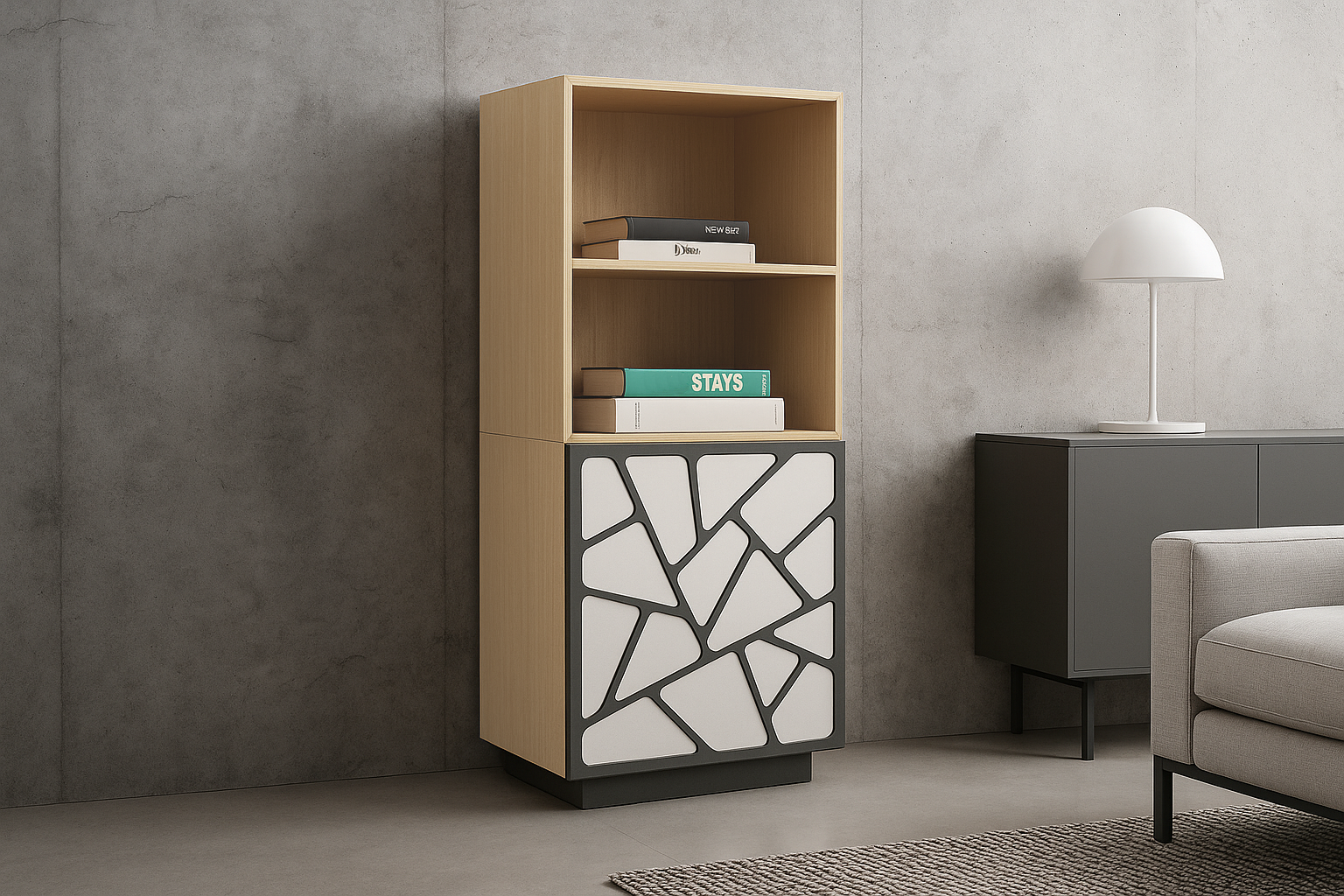 - Värv: Korpus ja sisu - naturaalne kask / Uksed - muster / Sokkel - tumehall.