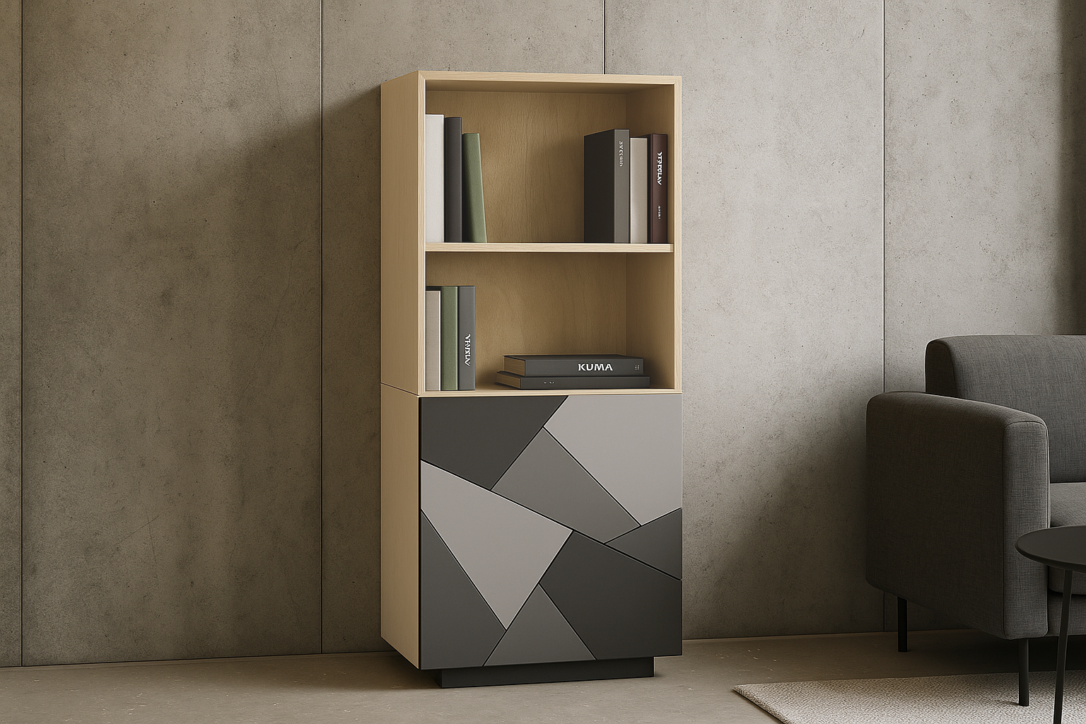 - Värv: Korpus ja sisu - naturaalne kask / Uksed - muster / Sokkel - tumehall.