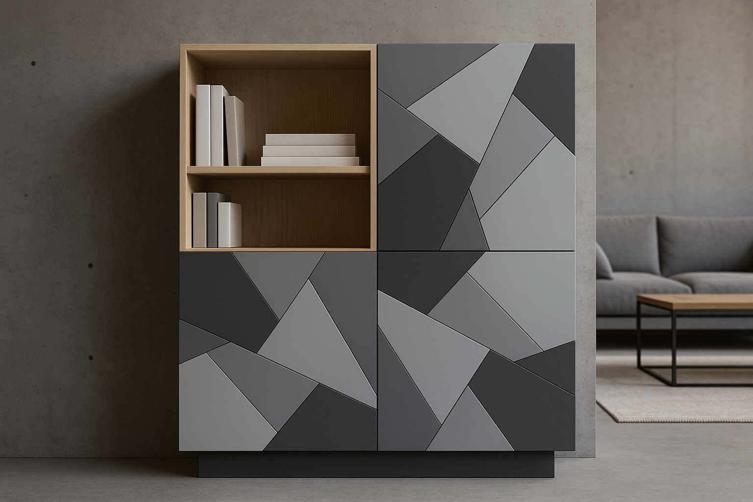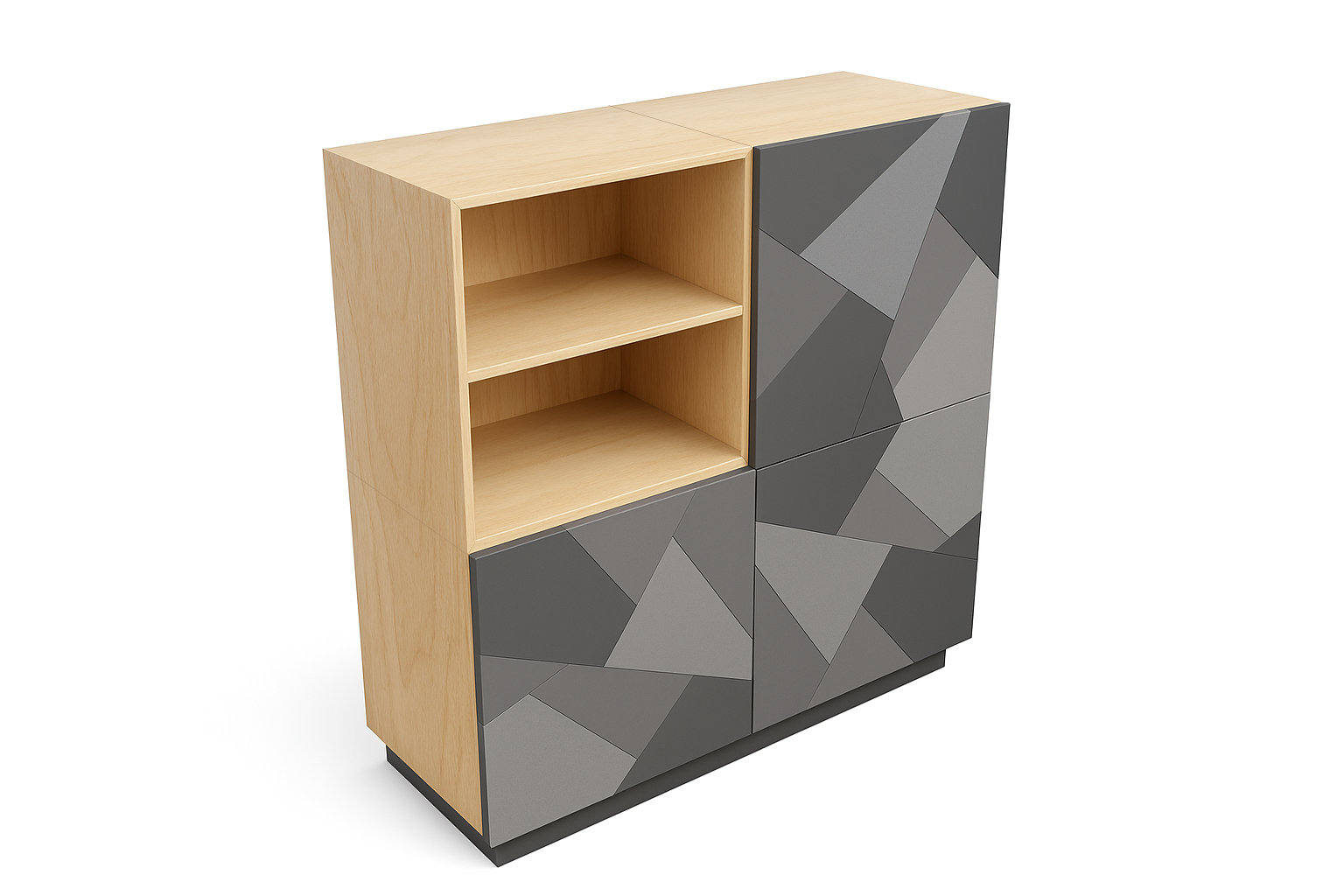 - Värv: Korpus ja sisu - naturaalne kask / Uksed - muster / Sokkel - tumehall.