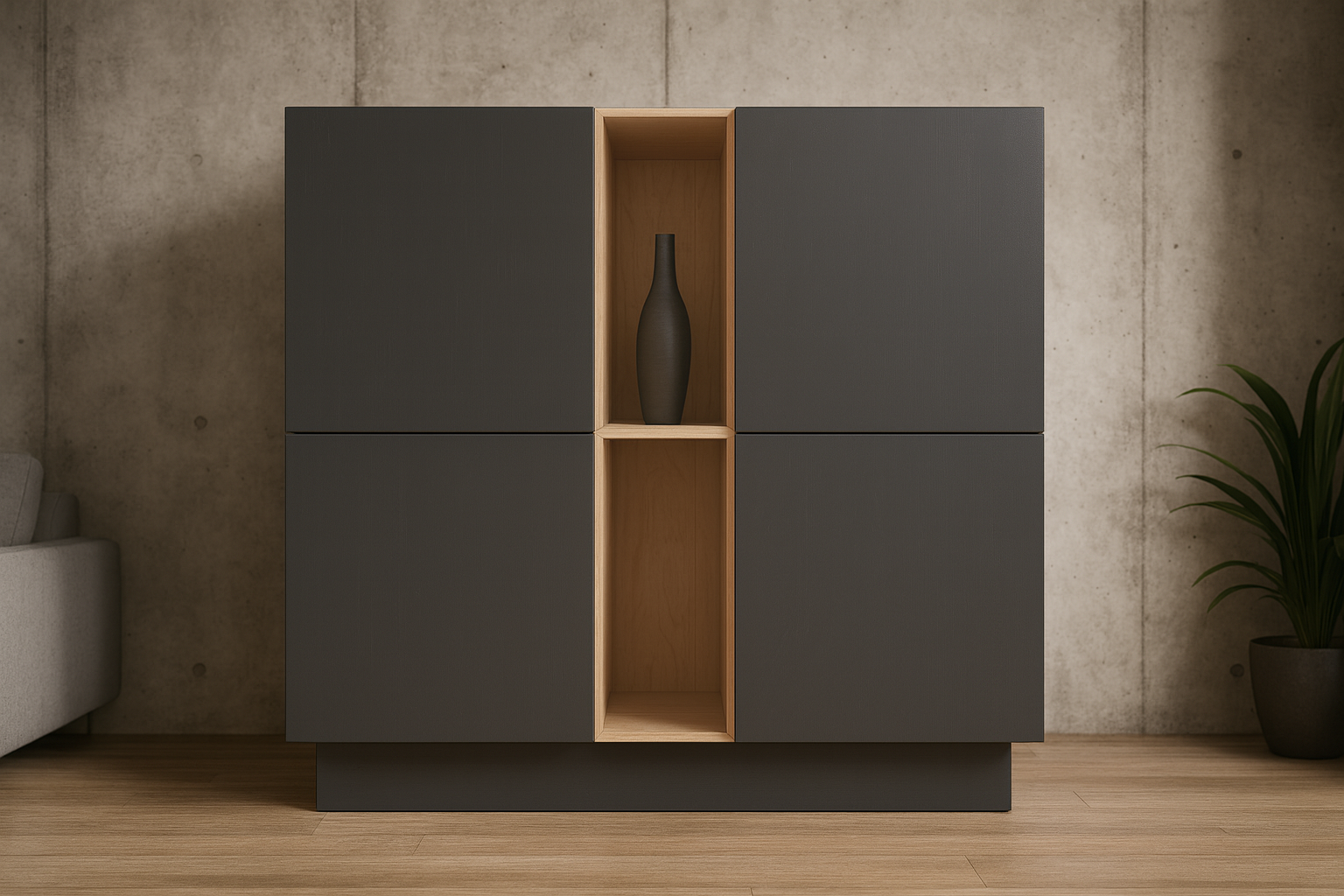 - Värv: Korpus ja sisu - naturaalne kask / Uksed - tumehall / Sokkel - tumehall.