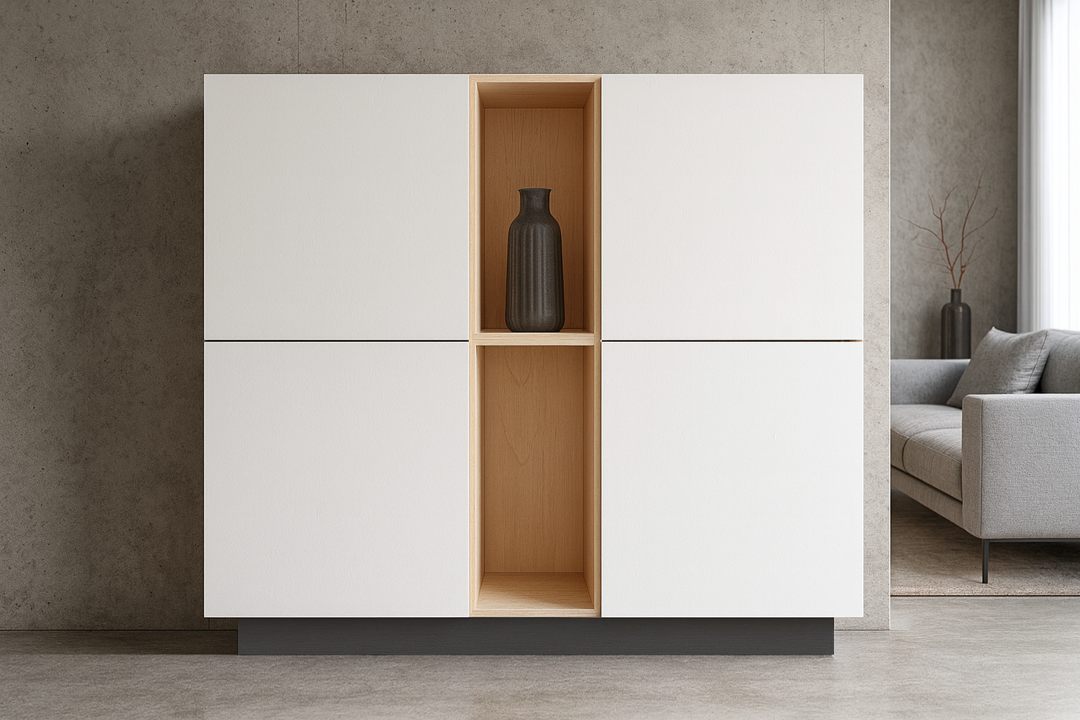 - Värv: Korpus ja sisu - naturaalne kask / Uksed - valge / Sokkel - tumehall.