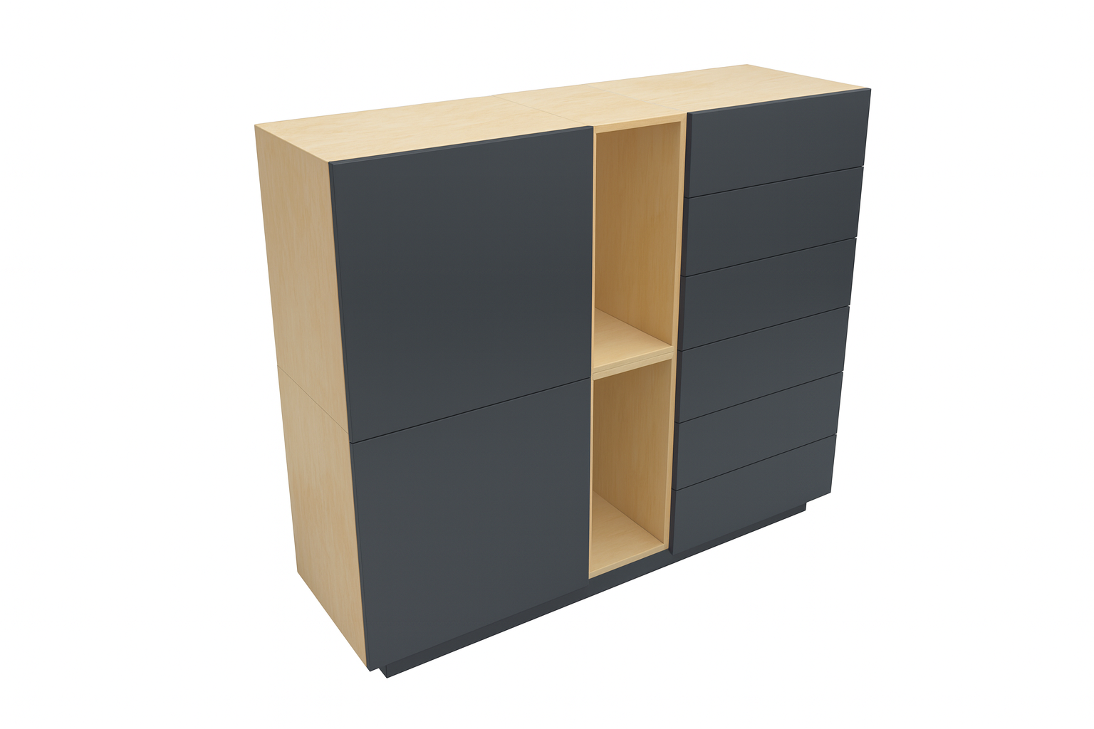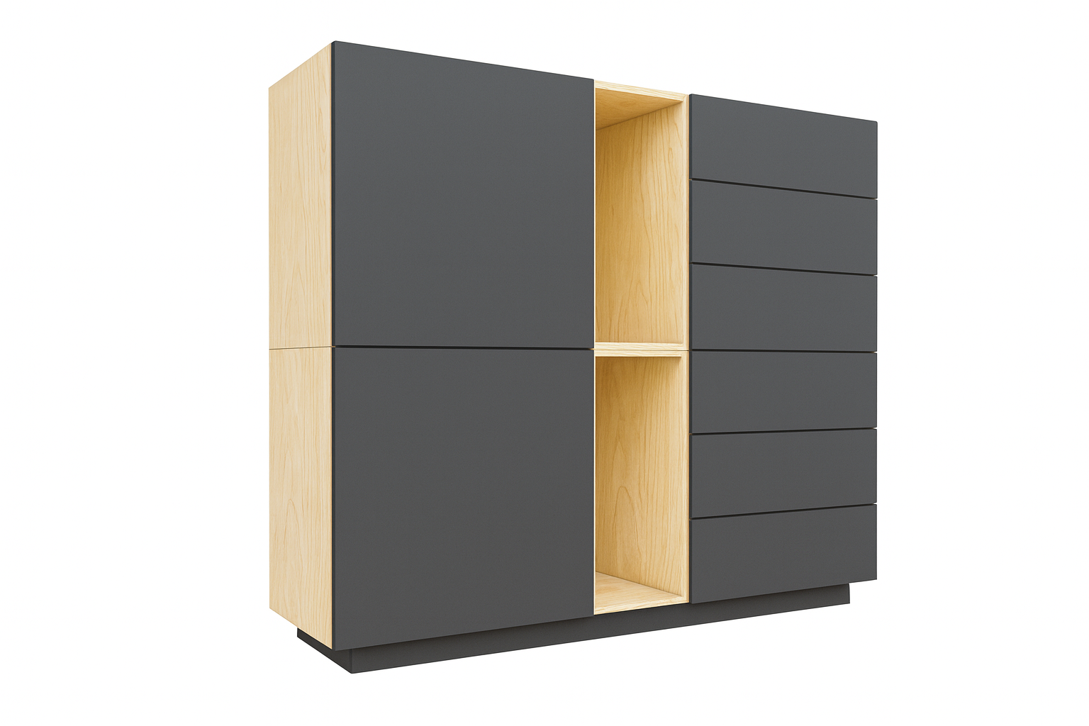 - Värv: Korpus ja sisu - naturaalne kask / Uksed - tumehall / Sokkel - tumehall.