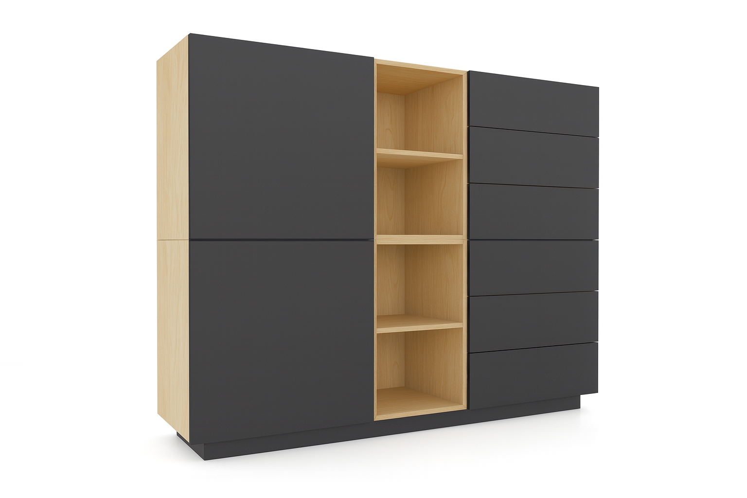 - Värv: Korpus ja sisu - naturaalne kask / Uksed - tumehall / Sokkel - tumehall.