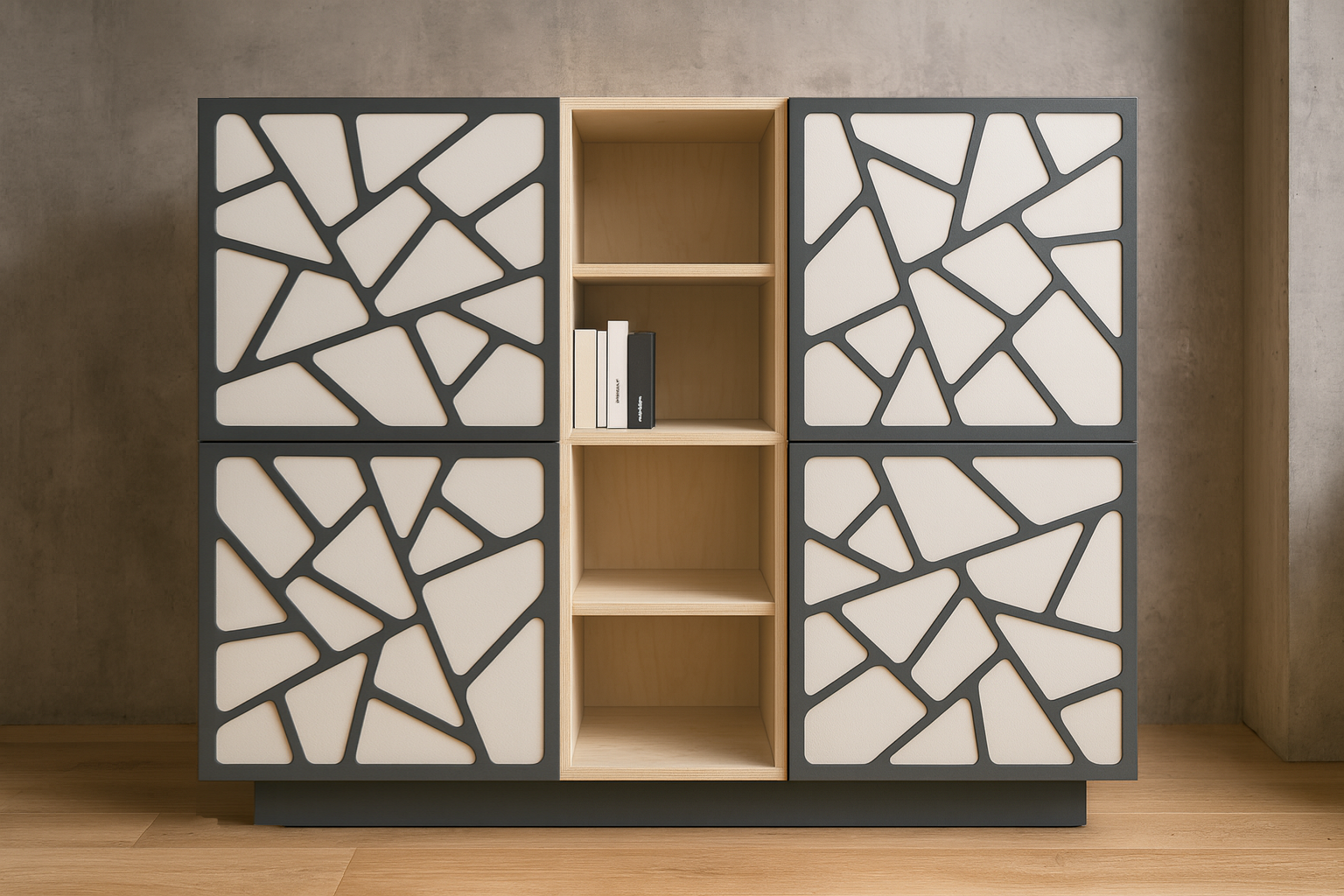 - Värv: Korpus ja sisu - naturaalne kask / Uksed - muster / Sokkel - tumehall.