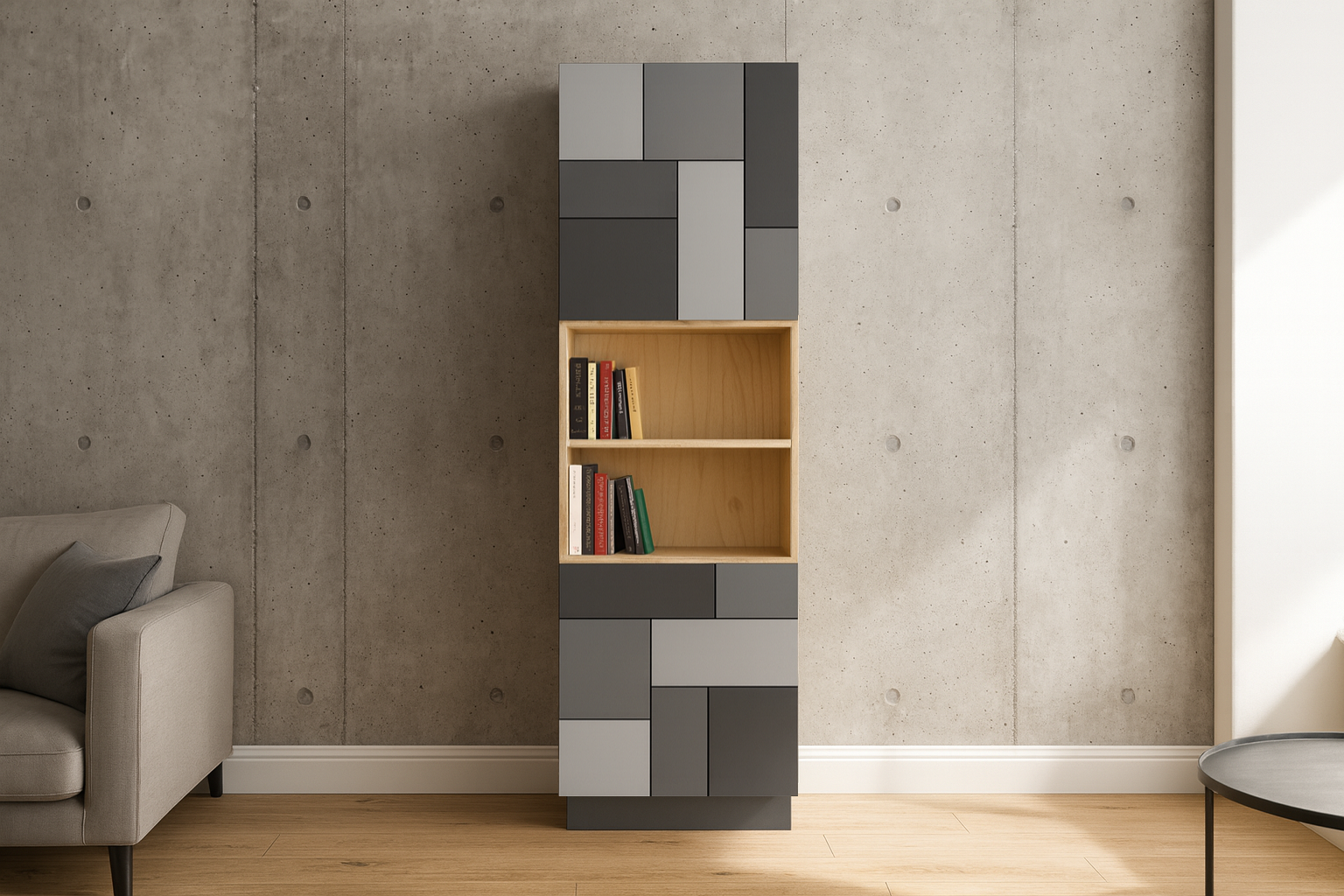 - Värv: Korpus ja sisu - naturaalne kask / Uksed - muster / Sokkel - tumehall.