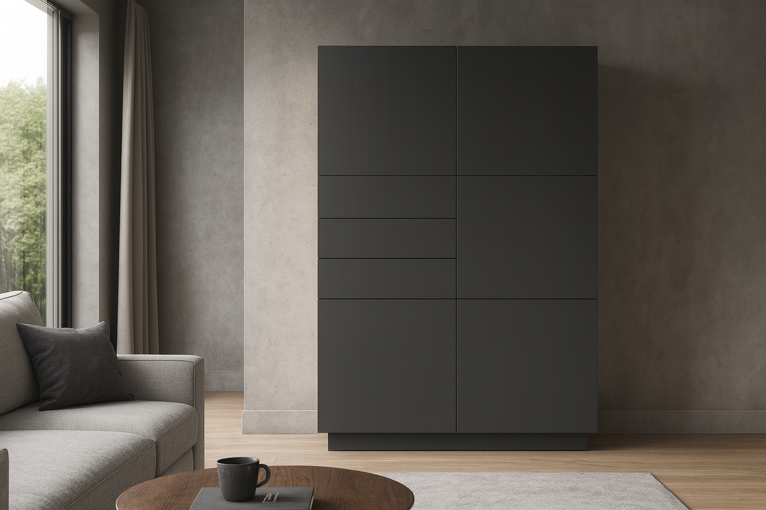 - Värv: Korpus ja sisu - naturaalne kask / Uksed - tumehall / Sokkel - tumehall.