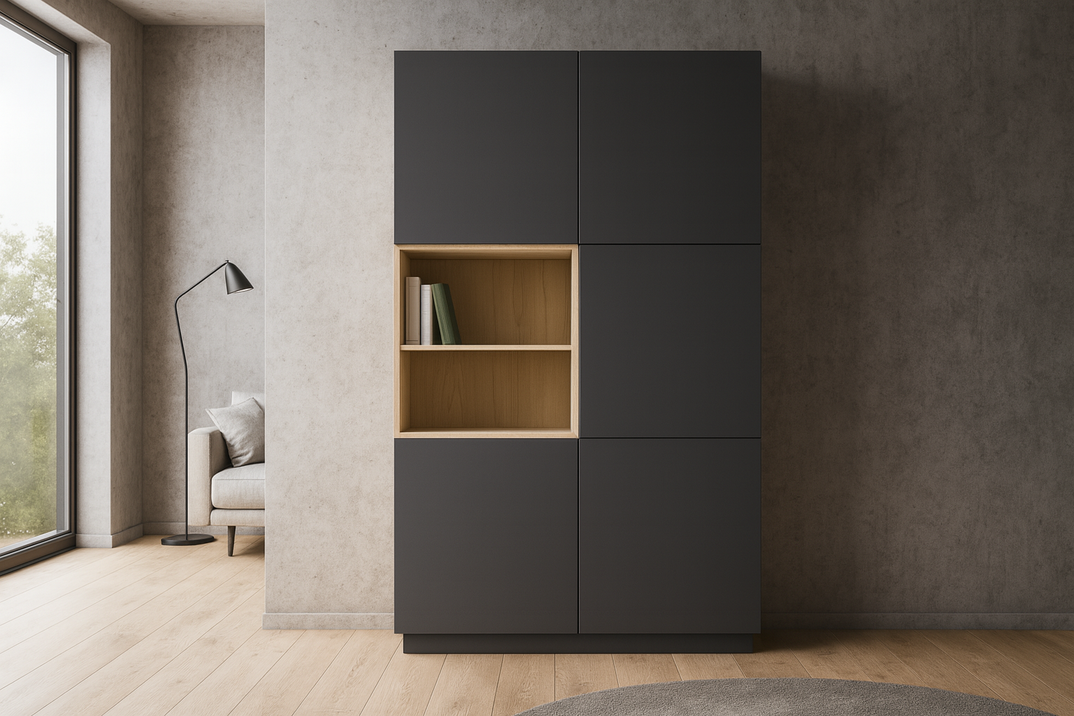 - Värv: Korpus ja sisu - naturaalne kask / Uksed - tumehall / Sokkel - tumehall.