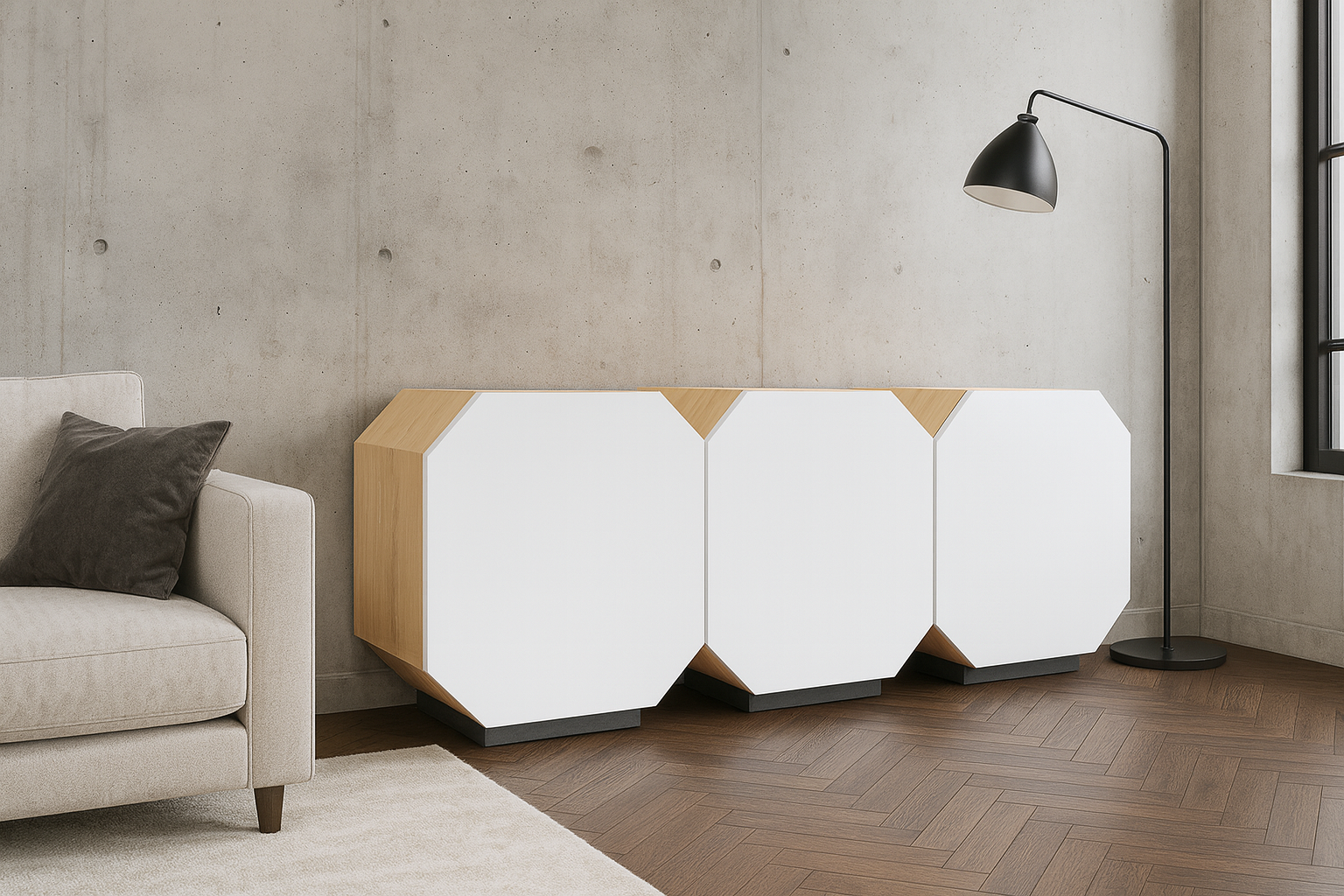 - Värv: Korpus ja sisu - naturaalne kask / Uksed - valge / Sokkel - tumehall.