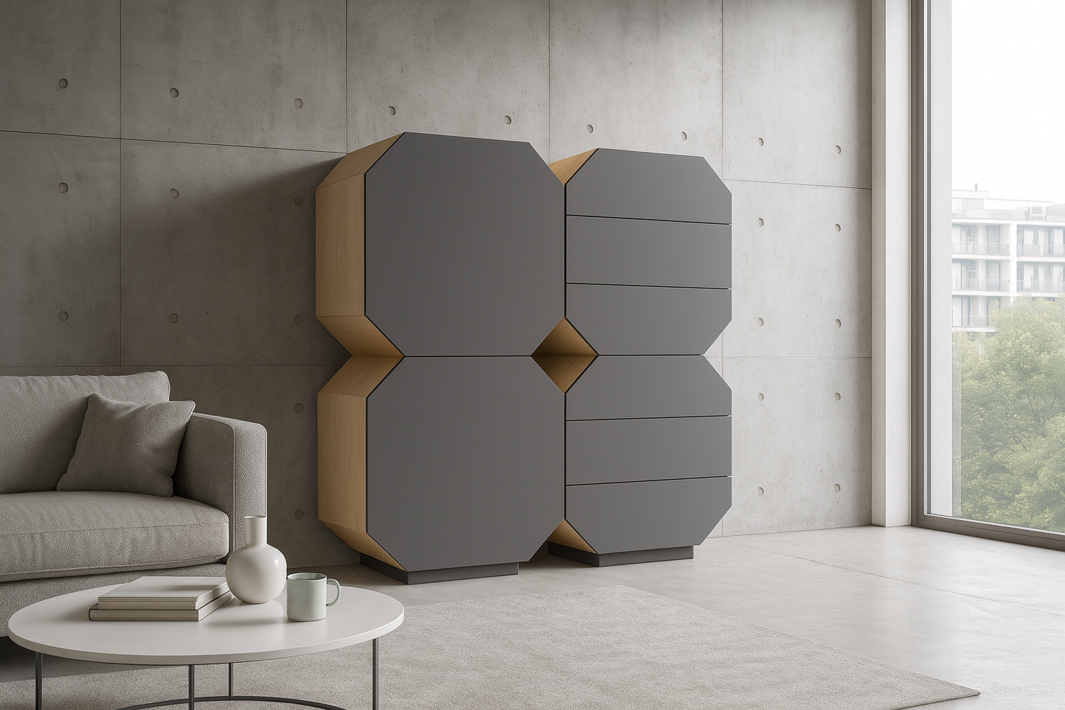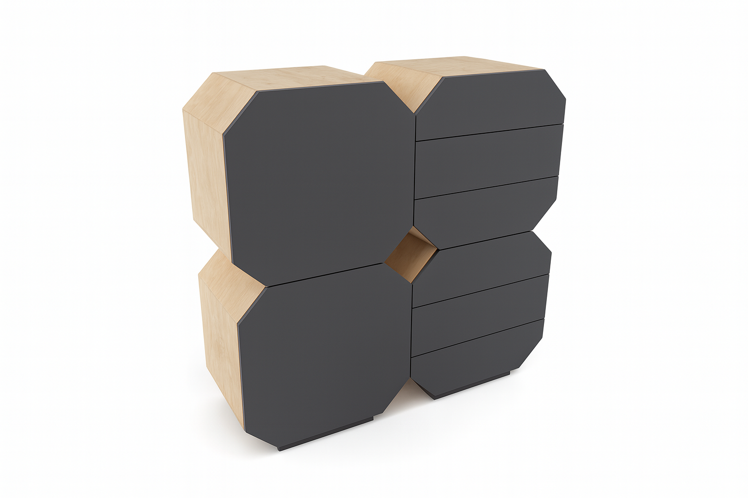 - Värv: Korpus ja sisu - naturaalne kask / Uksed - tumehall / Sokkel - tumehall.